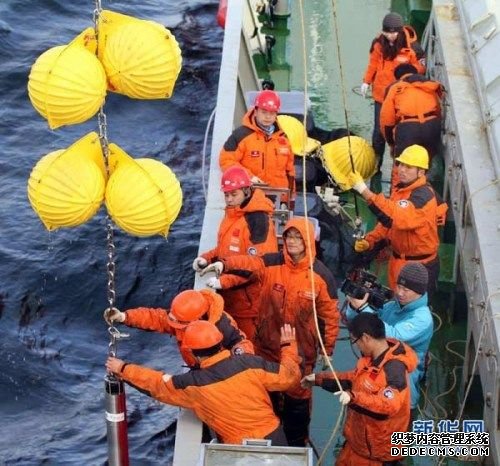 •  9月8日,科考队员将潜标从海面上拉上“雪龙”号甲板。