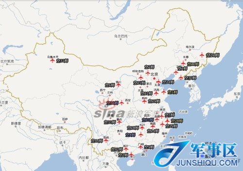 中国空军部队部署示意图