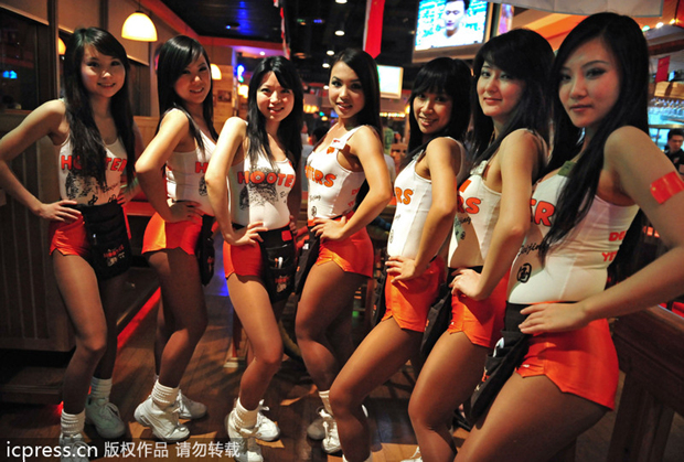 老北京的热辣美式餐厅,美式运动主题餐厅里的辣妹服务生。