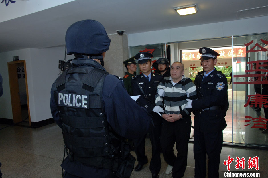 3月1日,根据最高人民法院院长签发的执行死刑命令,云南省昆明市中级人民法院依法对糯康、桑康·乍萨、依莱、扎西卡四名湄公河案罪犯执行了死刑。图为依莱被带出云南省看守所前往行刑地点。