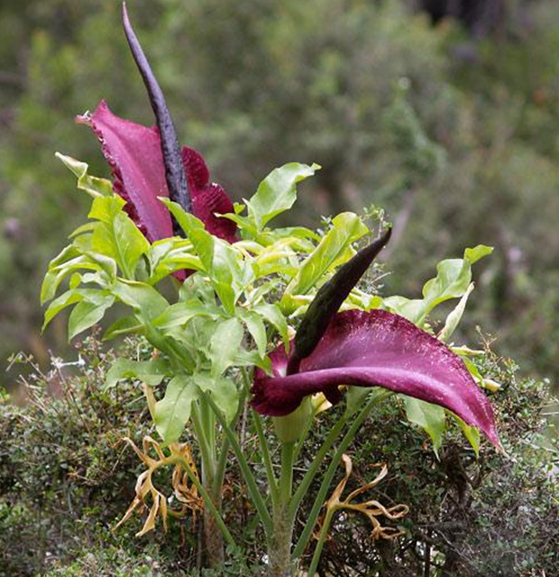 巨型魔芋生长在美国加州、俄勒冈州和华盛顿州,与以上植物一样释放着恶臭气味。或许令人感到欣慰的是,它的恶臭气味持续时间并不长,仅是1天,这种花看上去非常美妙奇特。(卡麦拉)