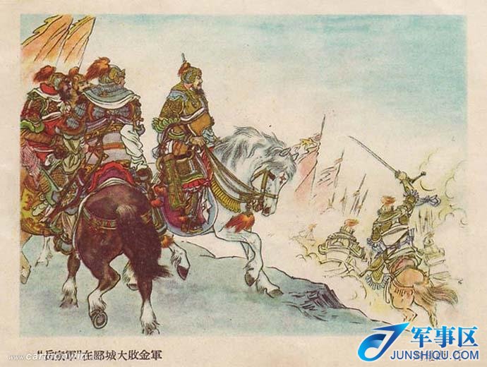岳云答应了一声,就带头冲上阵去,奋勇拼杀宋军随着岳云,杀得金兵丢下了遍野的尸 首。