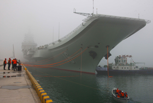 我辽宁舰航母首次靠泊青岛母港(1)