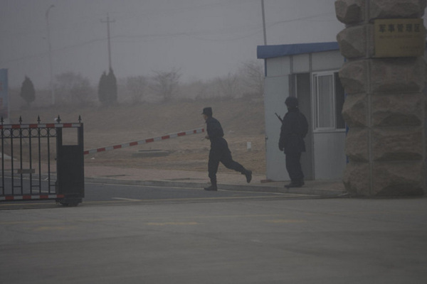 青岛某军港门口戒备森严